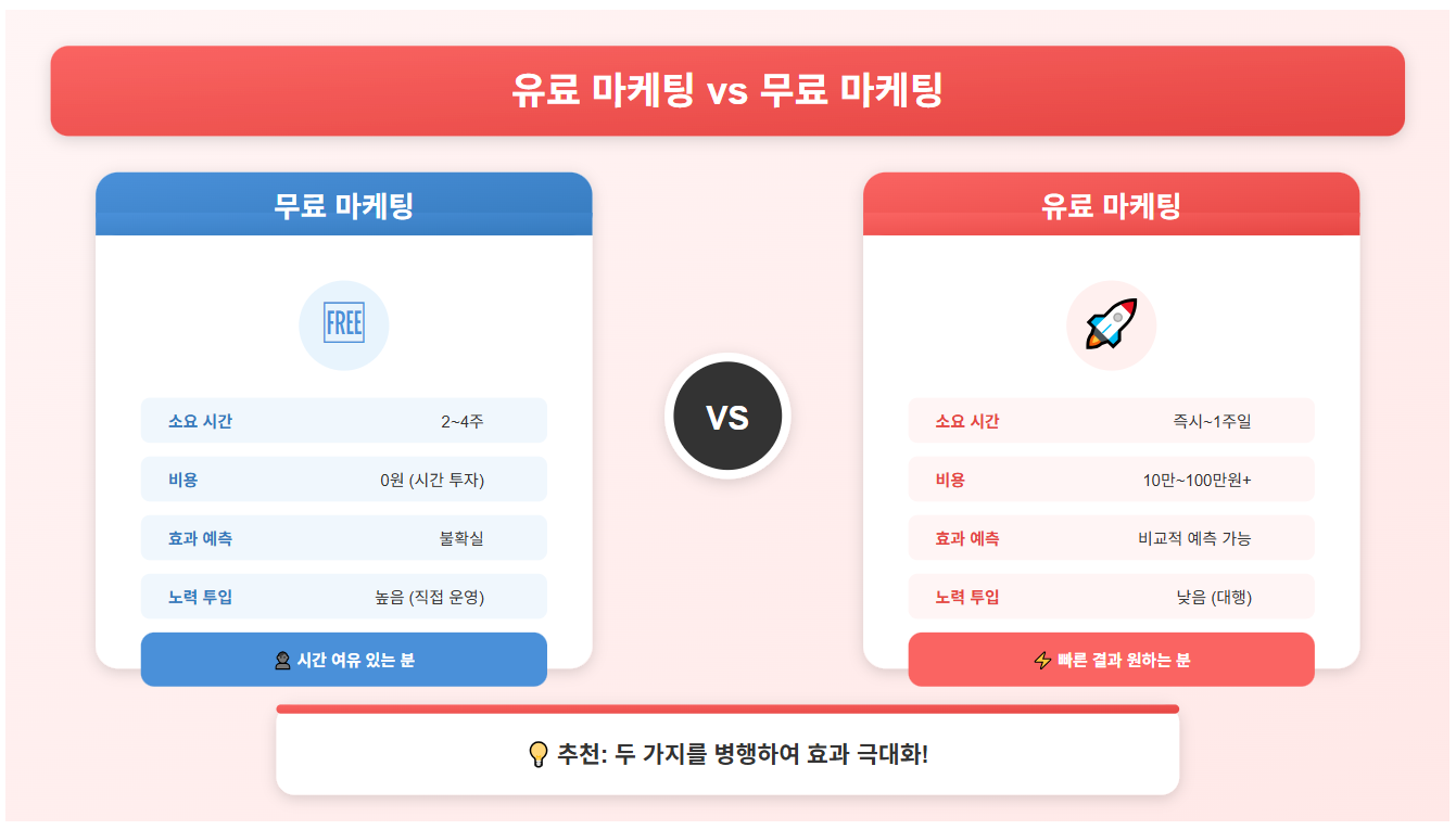 | 구분 | 무료 마케팅 | 유료 마케팅 |
