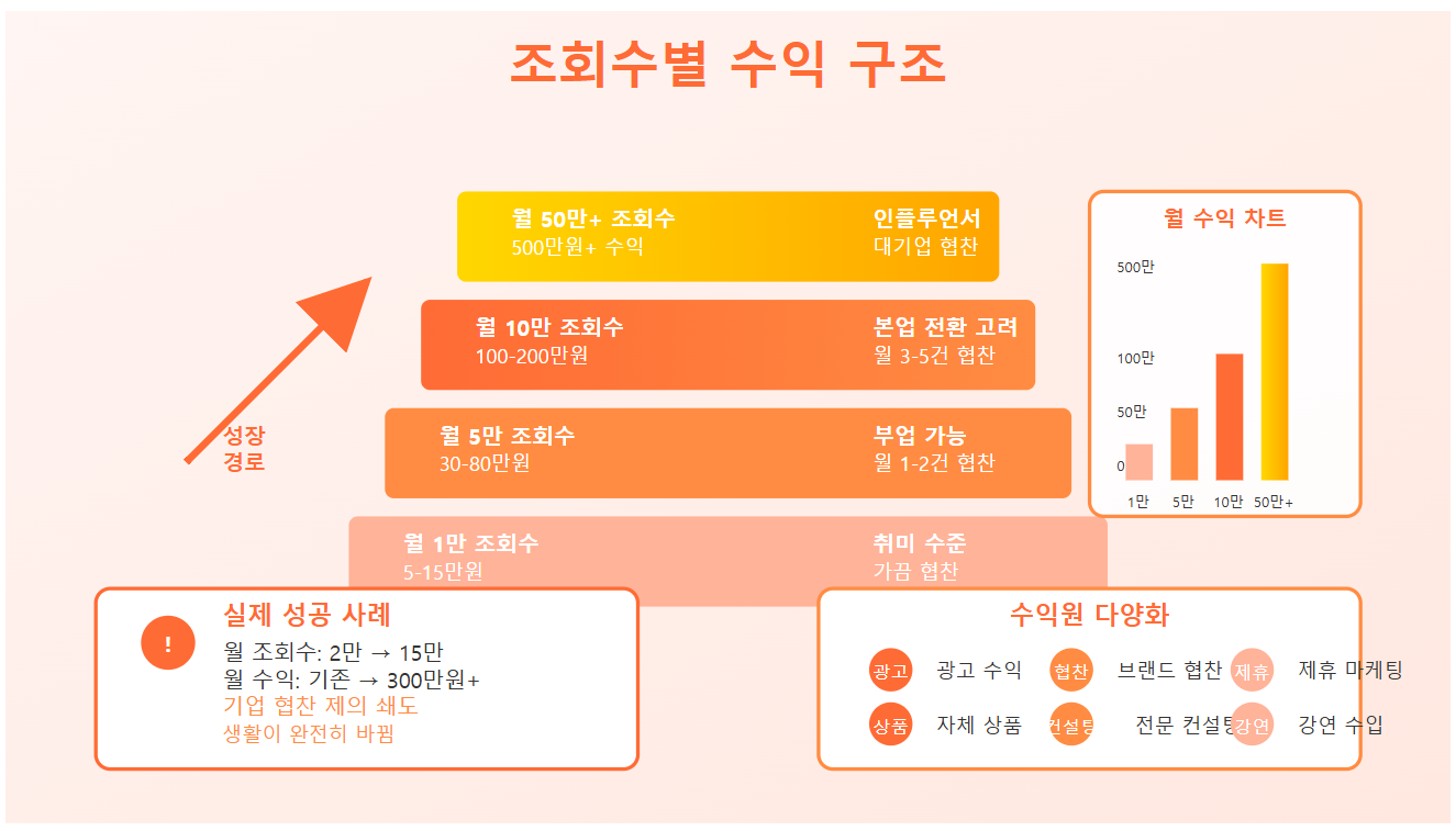 월 10만 조회수 | 100~200만원 | 월 3~5건 | 본업 전환 고려 |