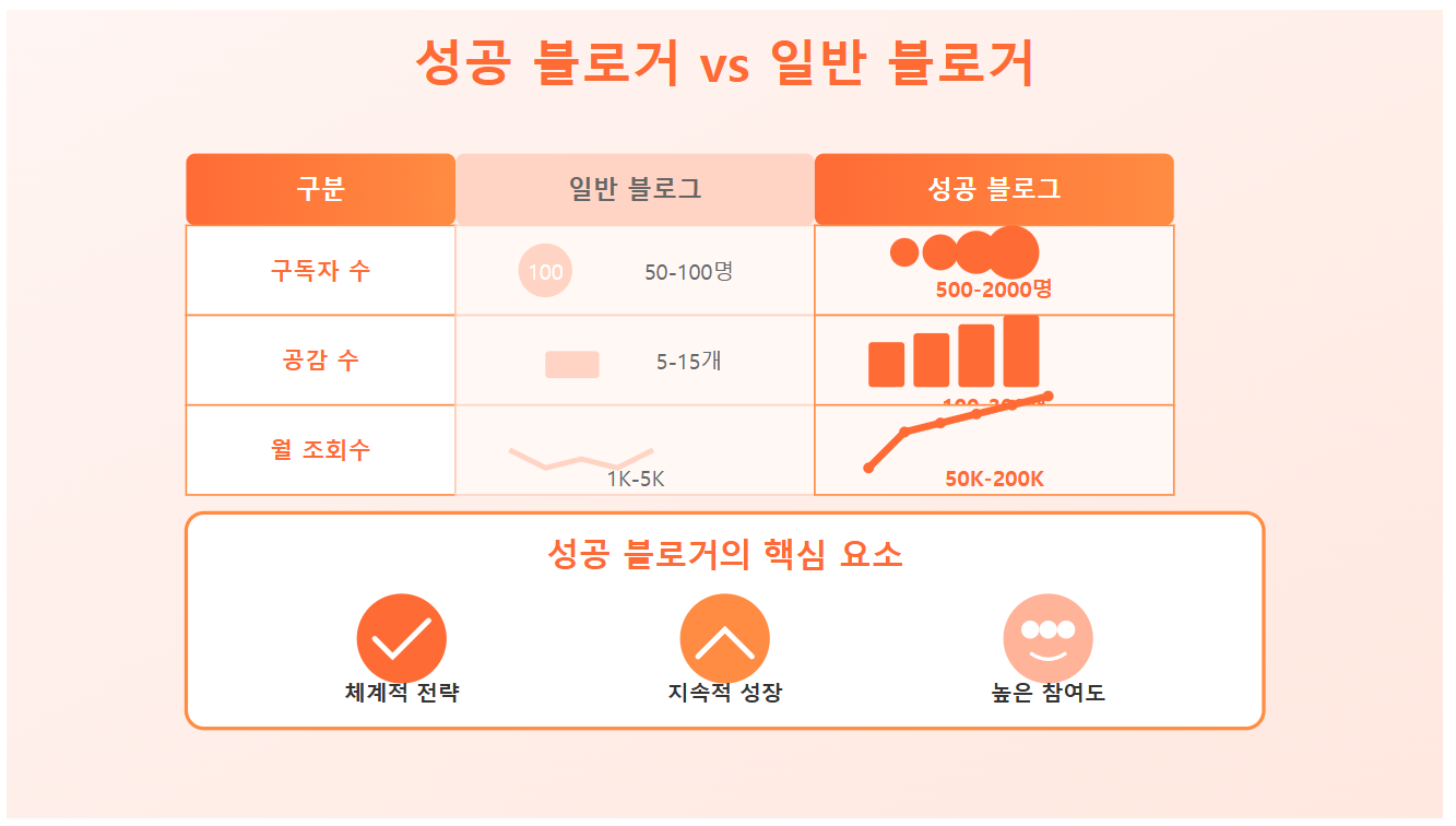 보시다시피 차이가 확실하죠? 성공한 블로거들은 단순히 글을 잘 쓰는 게 아니라, 체계적인 마케팅 전략을 가지고 있어요.