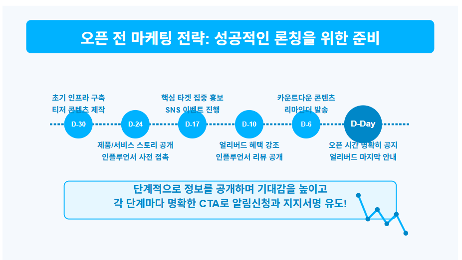 | D-24~18 | 제품/서비스 스토리 공개, 인플루언서 사전 접촉 | 스토리텔링 시작, 바이럴 준비 |