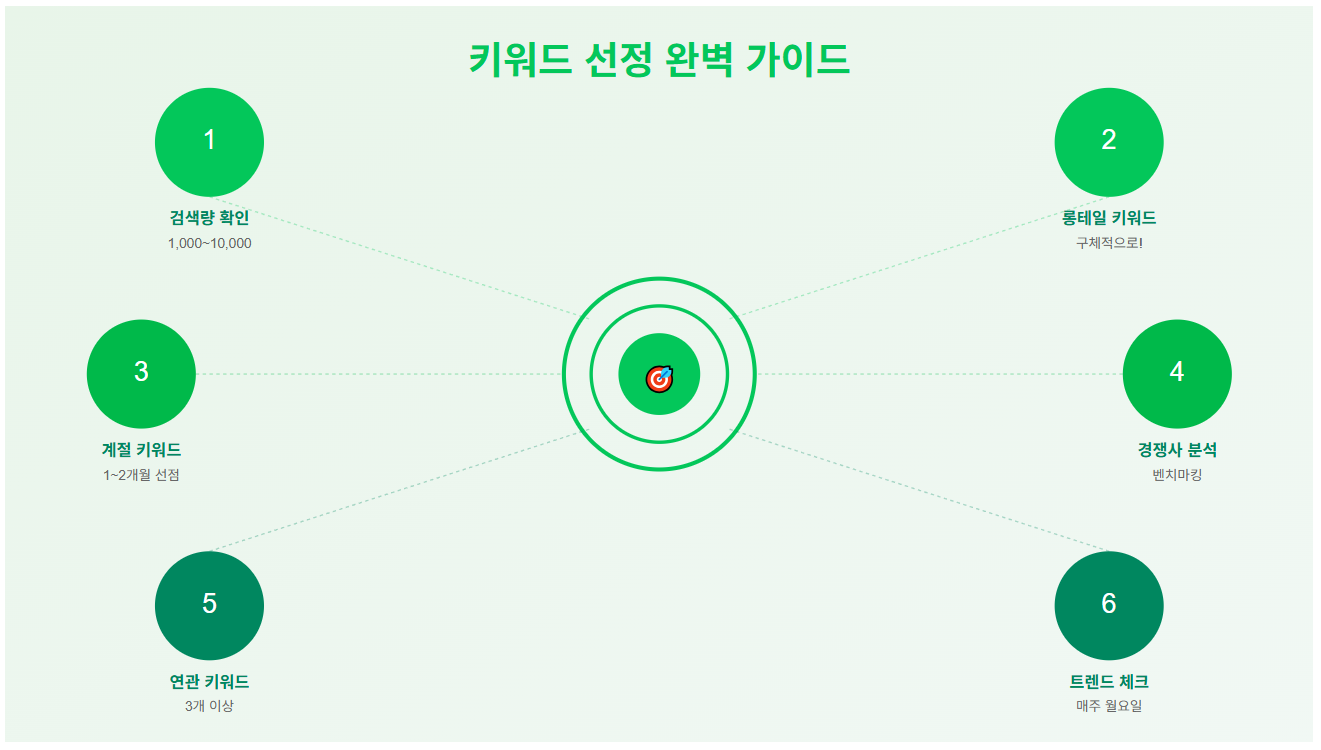 키워드 선정할 때 꼭 체크해야 할 포인트들을 정리해봤습니다. 순서대로 따라하시면 바로 적용 가능해요!