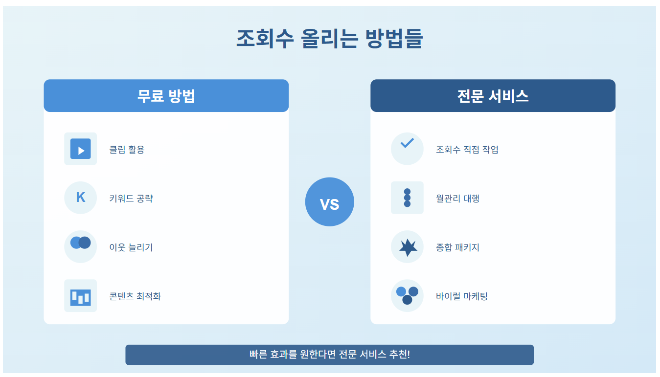 - 조회수 직접 작업 - 실제 사용자들이 블로그 방문해서 글 읽고 체류하는 방식. 가장 안전하고 효과적이에요