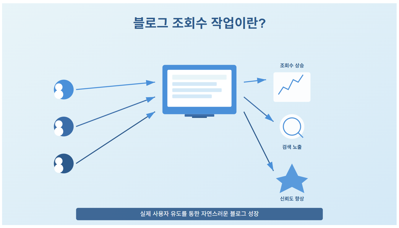 근데 알고 보니까 전혀 그런 게 아니더라구요. 블로그 조회수 작업은 실제 사용자들이 여러분의 블로그를 방문하도록 유도하는 마케팅 기법이에요.